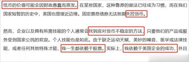 他认为,固定票息债券无法低于失控的货币,而他一生都依赖于股票,依赖于美国企业的成功。